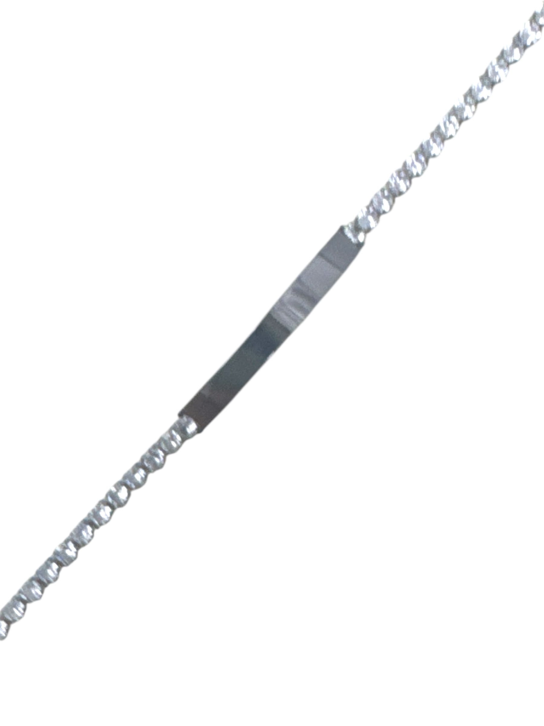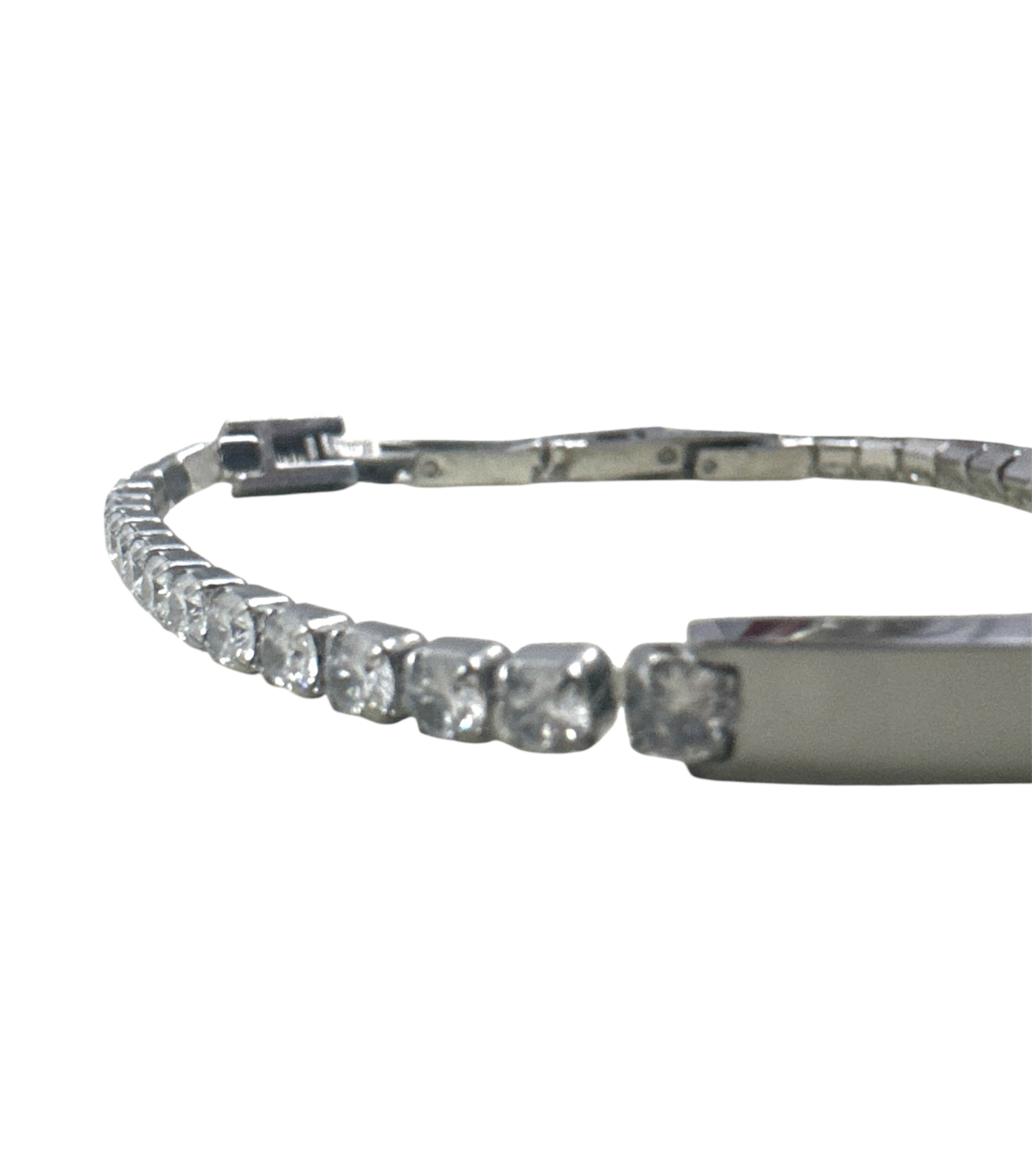 Eleva il tuo stile con il nostro Bracciale Tennis in Acciaio, un gioiello che fonde la lucentezza intramontabile dei cristalli con l’esclusività della personalizzazione. La struttura a fila continua di brillanti è interrotta al centro da una placchetta in acciaio liscio e lucido, studiata appositamente per ospitare un’incisione laser di alta precisione.