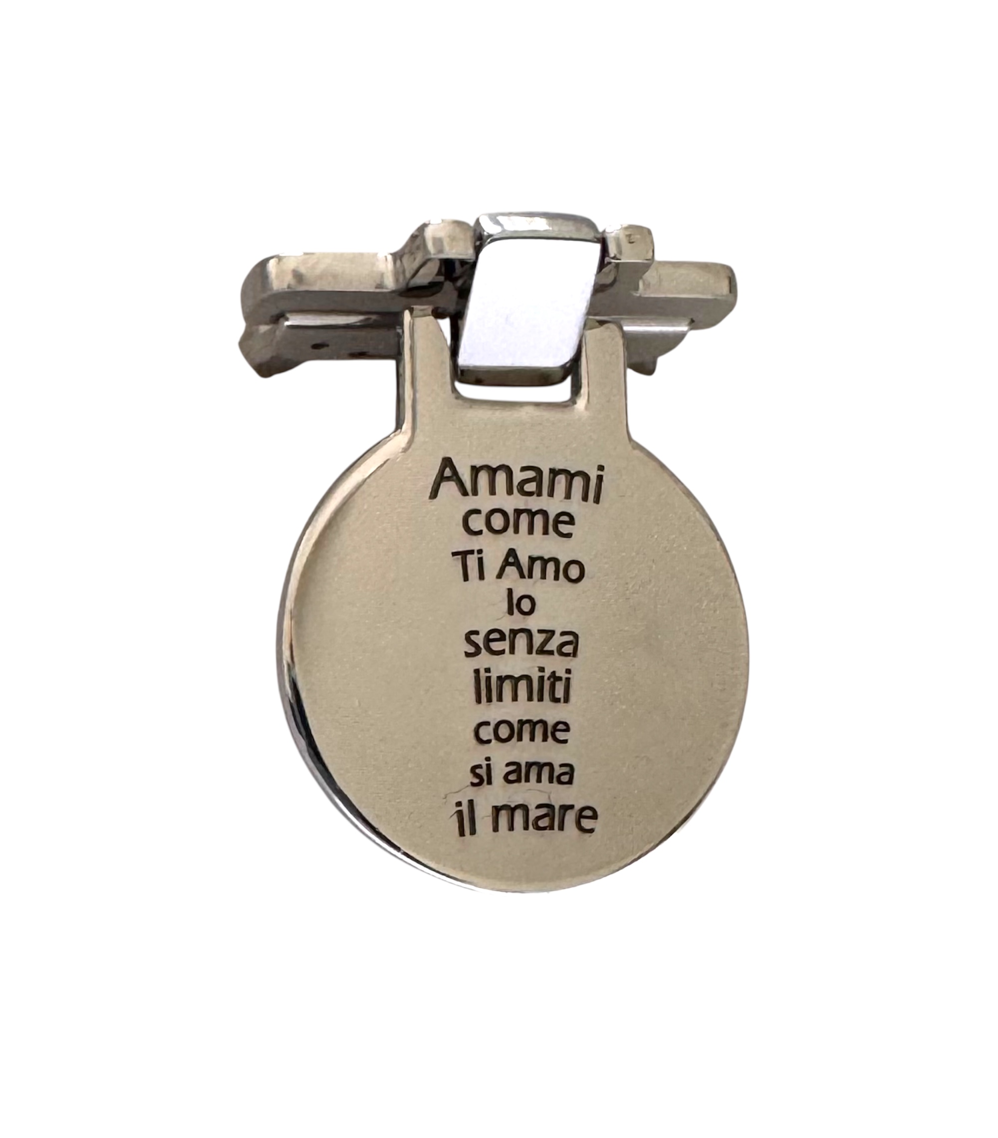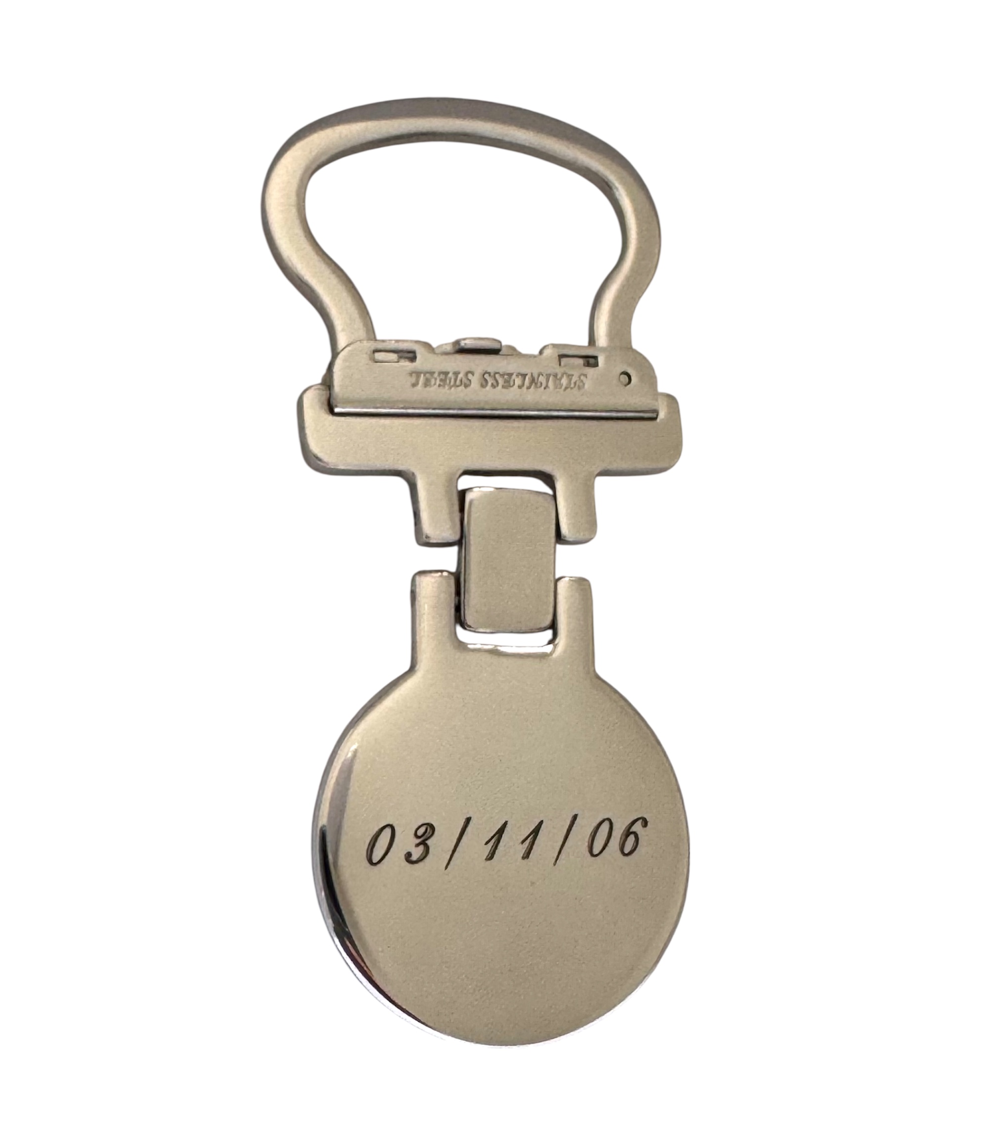 Questo esclusivo portachiavi in acciaio inossidabile di alta qualità combina un design moderno e robusto con la dolcezza di un messaggio personalizzato. La finitura a specchio e la forma circolare classica lo rendono un accessorio senza tempo, perfetto per custodire le tue chiavi con stile.