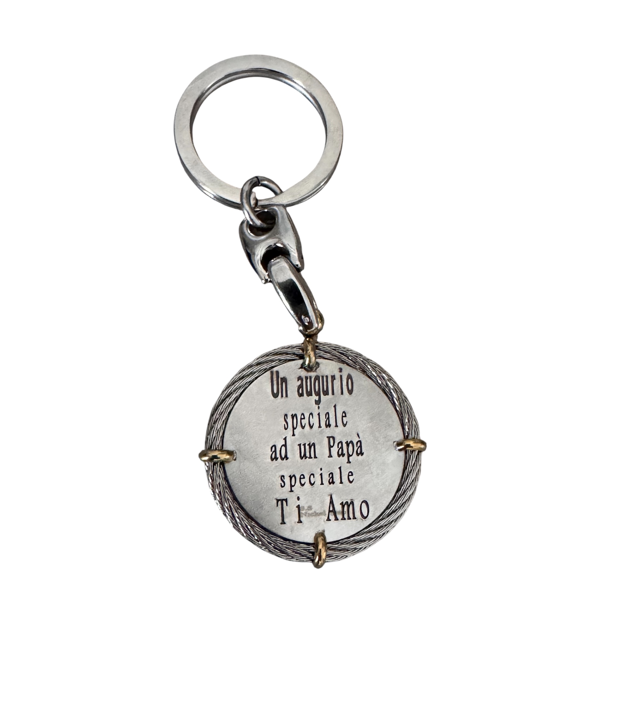 Praticità e Stile: Dotato di un robusto anello brisè e di un moschettone a scatto, può essere agganciato con facilità a chiavi, zaini o borse da viaggio.